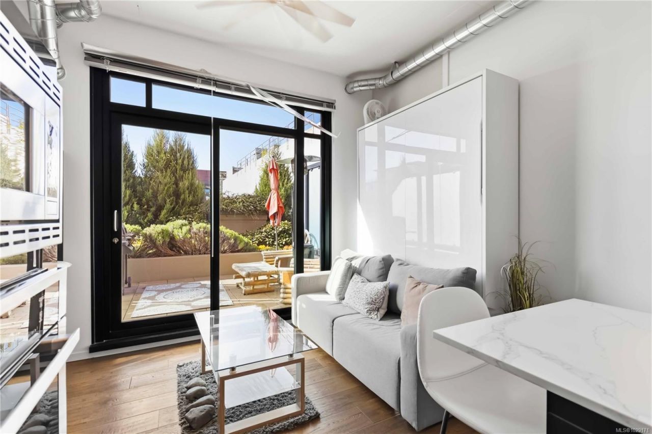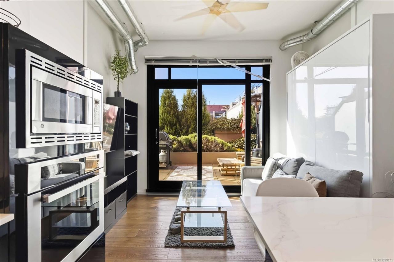 Thoughtfully designed for comfort and livability, this freshly painted unit features 10 ft ceilings, hardwood floors, quartz countertops, GE Loft Series appliances, and in-suite laundry. The south-facing 12' x 15' patio is a rare bonus, with only a few units offering this larger outdoor space. Sold fully furnished with a new queen Murphy bed and mattress, TV, coffee maker, patio furniture, BBQ, umbrella, propane heater, plus linens, towels, and kitchenware, it is a true turnkey opportunity. Located in vibrant Harris Green, it is steps to Yates Street Market, shops, restaurants, cafés, transit, and just minutes to the Inner Harbour. Includes...read more